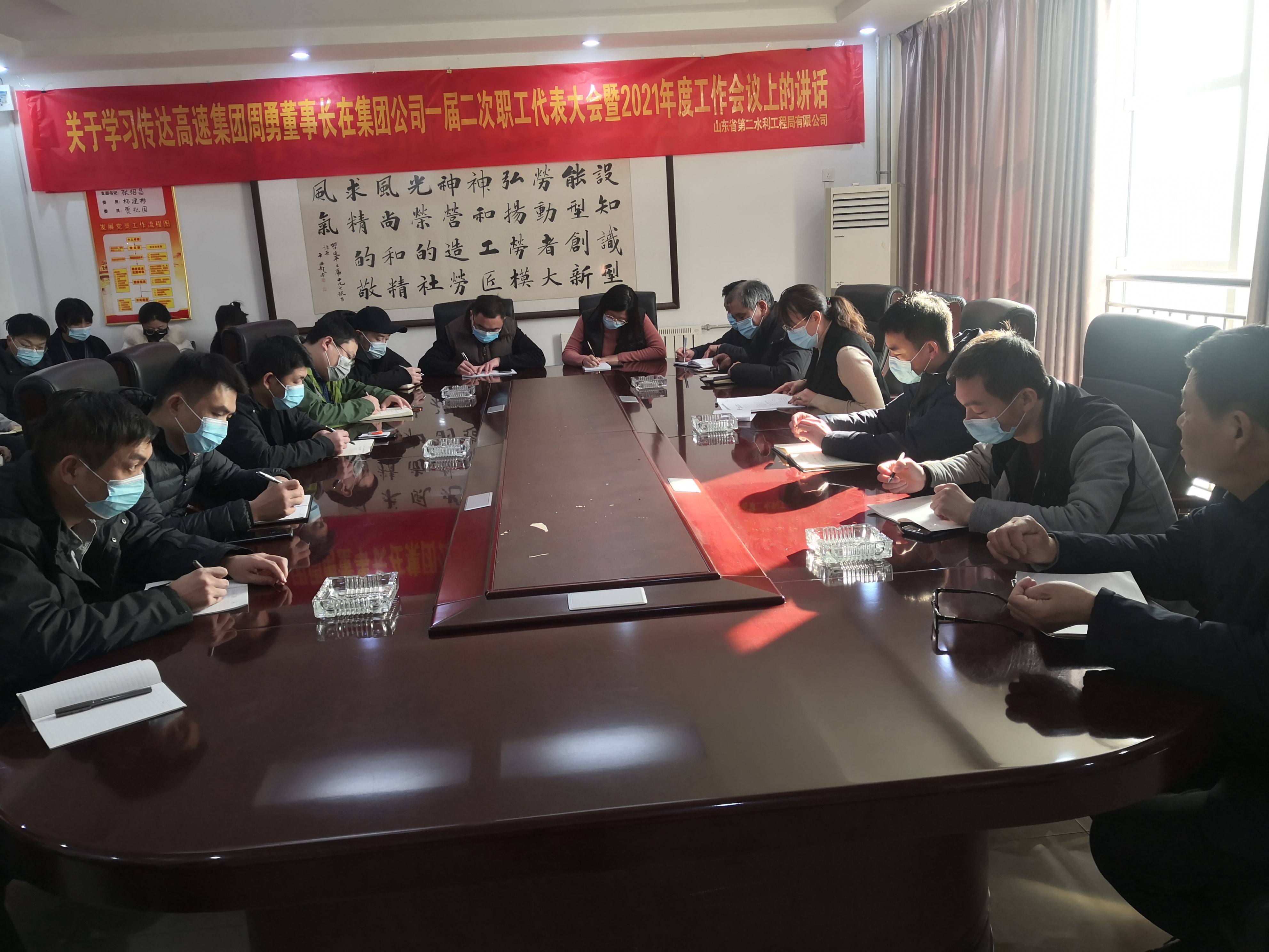 2021年2月8日,山東省第二水利工程局有限公司召集機(jī)關(guān)各科室、各項目人員組織開展學(xué)習(xí)貫徹集團(tuán)黨委書記、董事長周勇在集團(tuán)公司一屆二次職工(會員)代表大會暨2021年度工作會議上的重要講話。