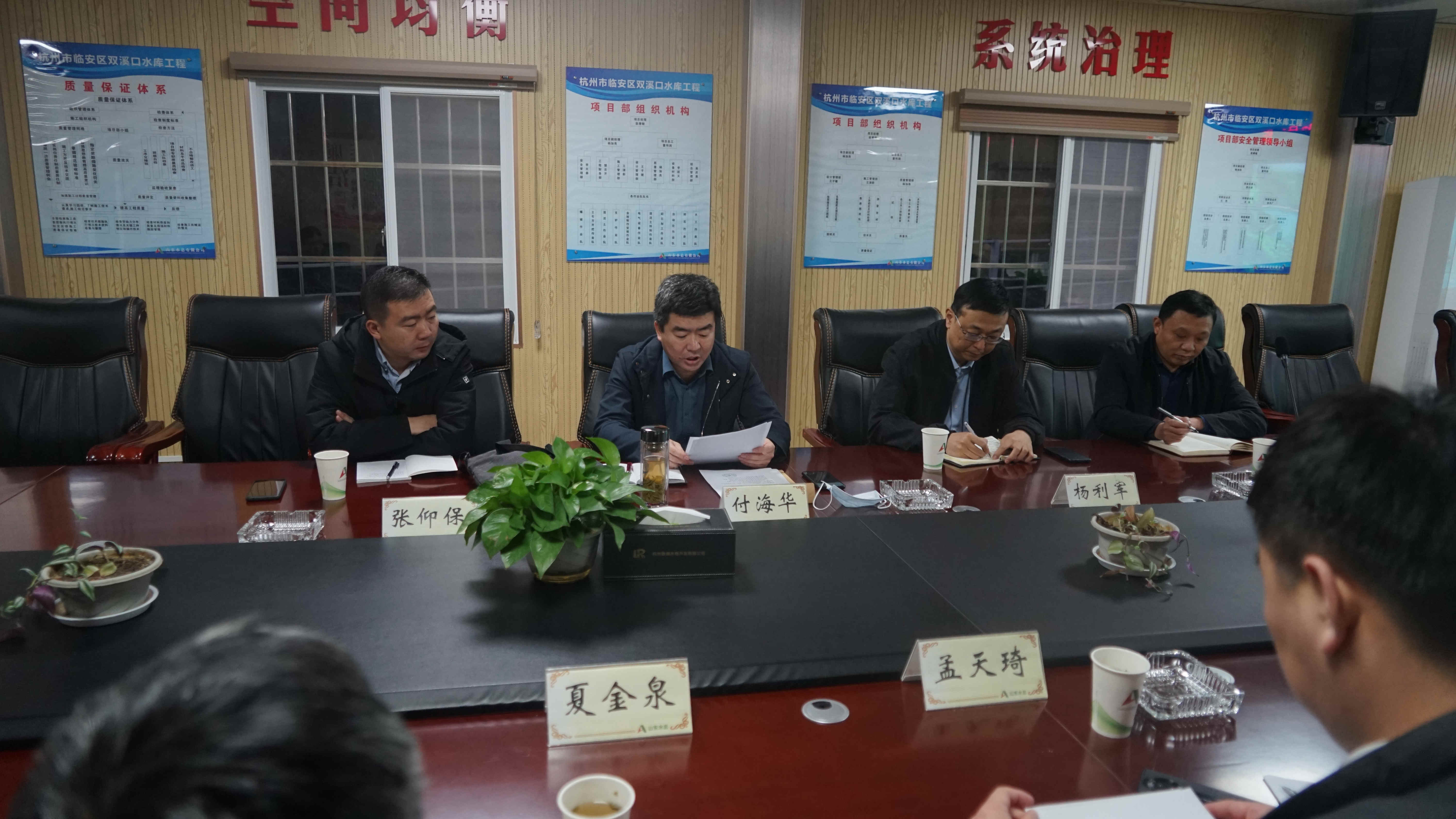 12月9日,公司副總經(jīng)理付海華、總會計師楊利軍一行到杭州市臨安區(qū)雙溪口水庫工程調(diào)研指導工作。魯潤公司副總經(jīng)理孟天琦、總工程師夏金泉、六公司副總經(jīng)理楊加良及項目相關人員參加會議。