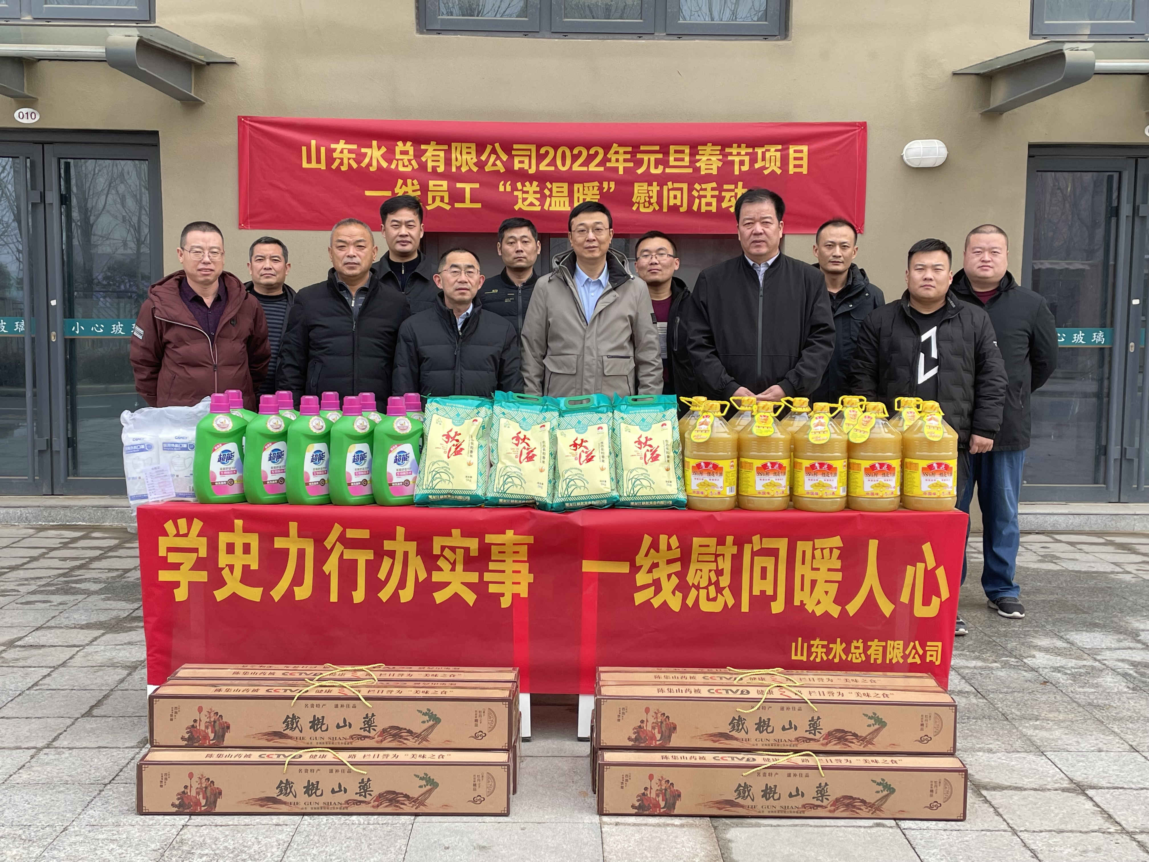 聲聲問(wèn)候暖人心,句句祝福表關(guān)愛(ài)。 1月6日,山東水總有限公司黨委委員、副總經(jīng)理袁英杰、總會(huì)計(jì)師楊利軍及綜合辦公室主任張輝一行來(lái)到菏澤市職業(yè)教育園區(qū)項(xiàng)目建設(shè)工地現(xiàn)場(chǎng),走訪慰問(wèn)元旦期間堅(jiān)守崗位的一線職工,把水總黨委、工會(huì)的節(jié)日問(wèn)候和新年祝福送到職工身邊。