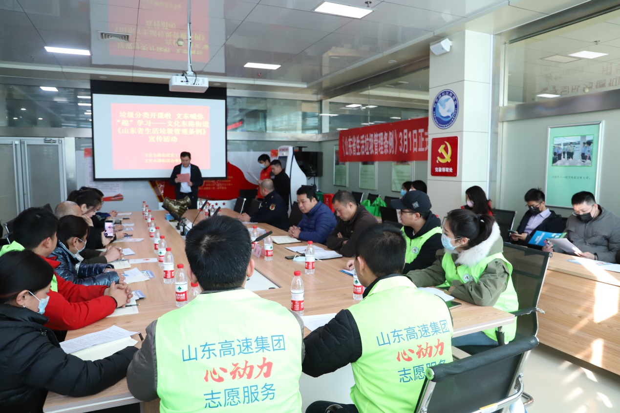 志愿服務(wù)隊(duì)首先到社區(qū)駐地參加文化東路街道黨工委組織的垃圾分類專題知識(shí)講座,全面學(xué)習(xí)了垃圾分類知識(shí)和《山東省生活垃圾管理?xiàng)l例》,充分認(rèn)識(shí)到了垃圾分類工作的重要性和緊迫性。學(xué)習(xí)活動(dòng)結(jié)束后,志愿服務(wù)隊(duì)來到社區(qū)生活區(qū)開展知識(shí)宣傳和宣傳單頁(yè)的發(fā)放,讓更多群眾樹立了“垃圾分一分,生活美十分”的愿景。