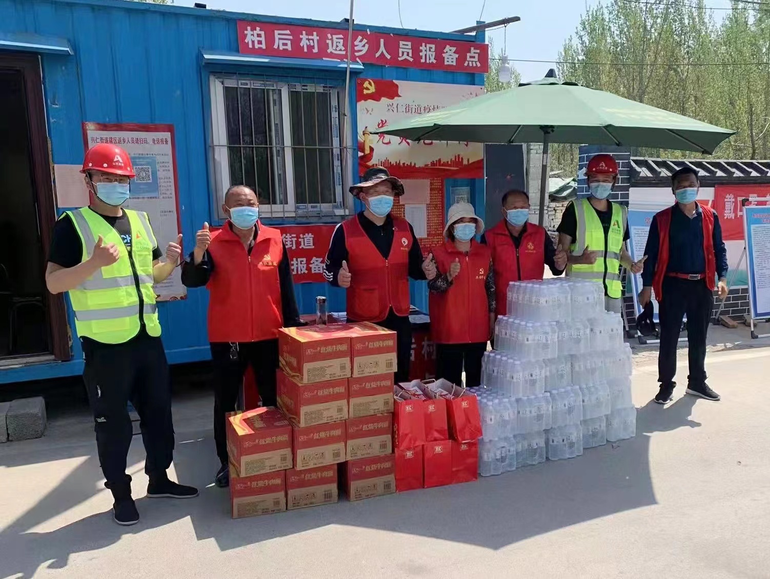 4月7日,基礎(chǔ)工程公司棗莊蟠龍河項目部主動對接項目部所在的棗莊高新區(qū)興仁街道,了解當(dāng)?shù)匾咔榉揽匦枨?,為街道辦事處送去了口罩、消毒液等防疫物資及捐款;4月11日,項目部又為街道社區(qū)一線核酸檢測的醫(yī)務(wù)人員、街道工作人員、社區(qū)工作者送去了礦泉水、方便面、火腿腸等為抗疫一線工作人員送去問候。
