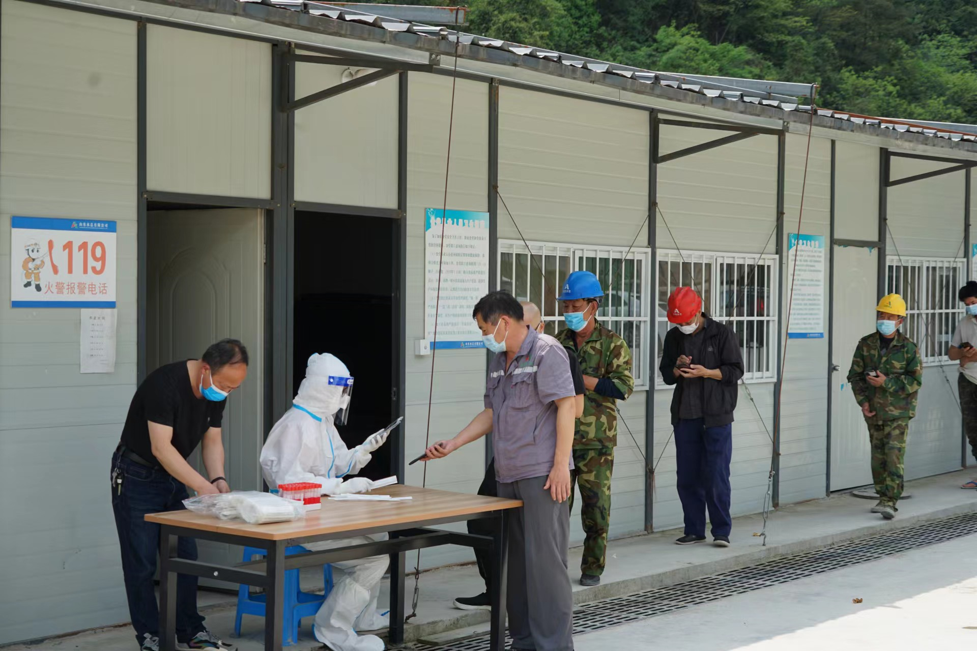 當(dāng)前,全國疫情呈現(xiàn)反彈態(tài)勢,疫情防控形勢異常嚴(yán)峻。為有效管控疫情傳播風(fēng)險,落實疫情防控主體責(zé)任,4月12日,杭州魯潤公司邀請項目駐地清涼峰鎮(zhèn)衛(wèi)生院醫(yī)護人員,到雙溪口水庫項目部對全體參建人員進行核酸檢測,確保應(yīng)檢盡檢、全員覆蓋,筑牢建筑工地疫情防控安全網(wǎng)。醫(yī)護人員來工程現(xiàn)場核酸檢測,不僅免去了項目人員到醫(yī)院排隊的不便,更大程度的節(jié)約了時間,避免影響正常施工。