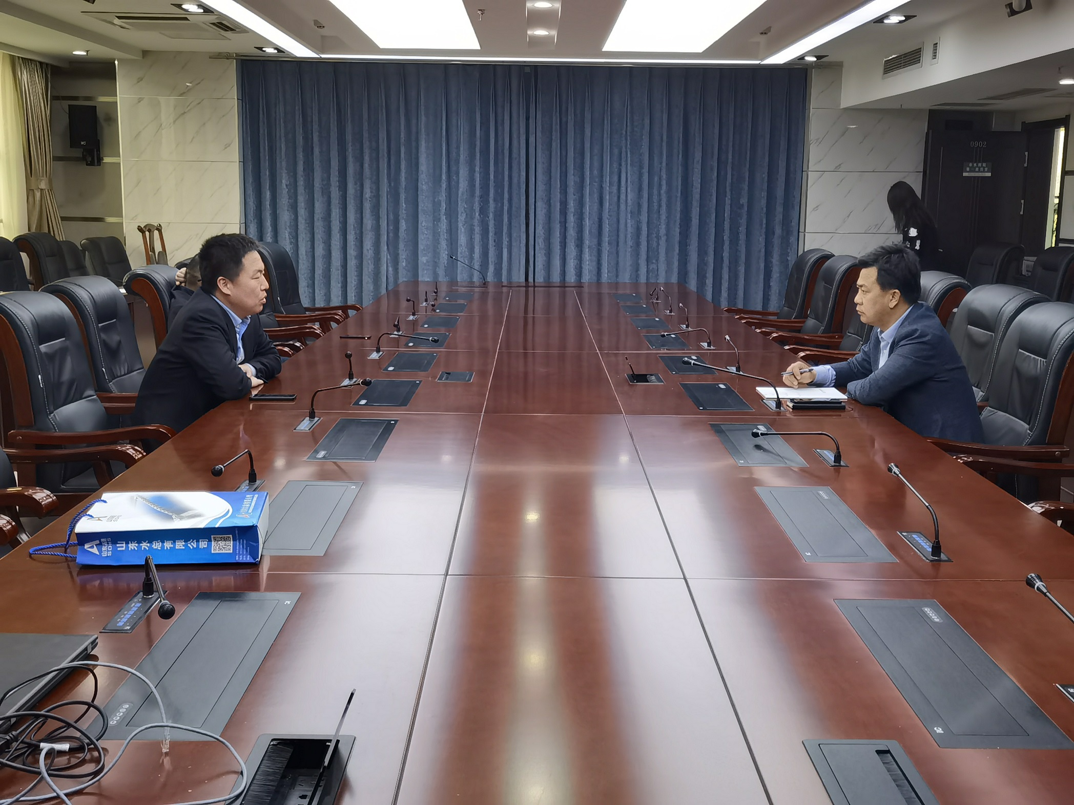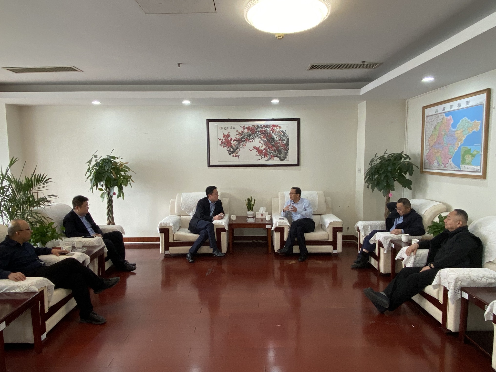隨后,靳文碩等一行到青島區(qū)域協(xié)同發(fā)展辦公室同李丕明主任進(jìn)行座談交流。李丕明對靳文碩一行表示熱烈歡迎,并對水總在青島區(qū)域的投資建設(shè)給予大力支持,希望雙方在此基礎(chǔ)之上再進(jìn)行深入探討,力爭實(shí)現(xiàn)更深層次的合作發(fā)展。