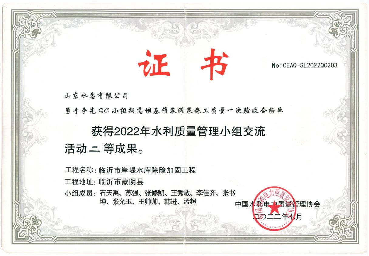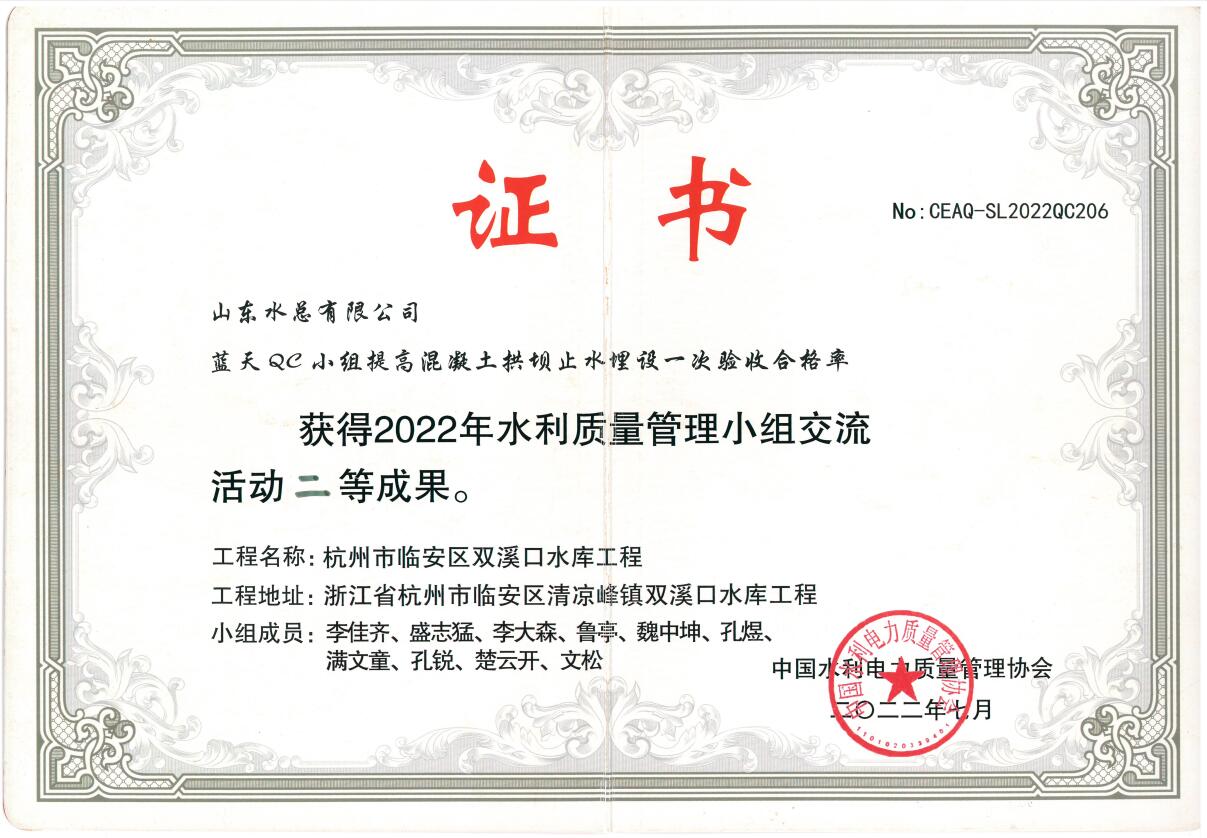 近日,中國水利電力質(zhì)量管理協(xié)會2022年水利質(zhì)量管理小組交流活動結(jié)果與獲獎名單揭曉,公司申報的《提高鋼壩閘閘墻外觀質(zhì)量一次驗收合格率》獲得一等成果、《提高混凝土拱壩止水埋設(shè)一次驗收合格率》《提高大體積現(xiàn)澆混凝土強(qiáng)約束區(qū)溫度控制水平》《提高壩基帷幕灌漿施工質(zhì)量一次驗收合格率》3項成果獲得二等成果。