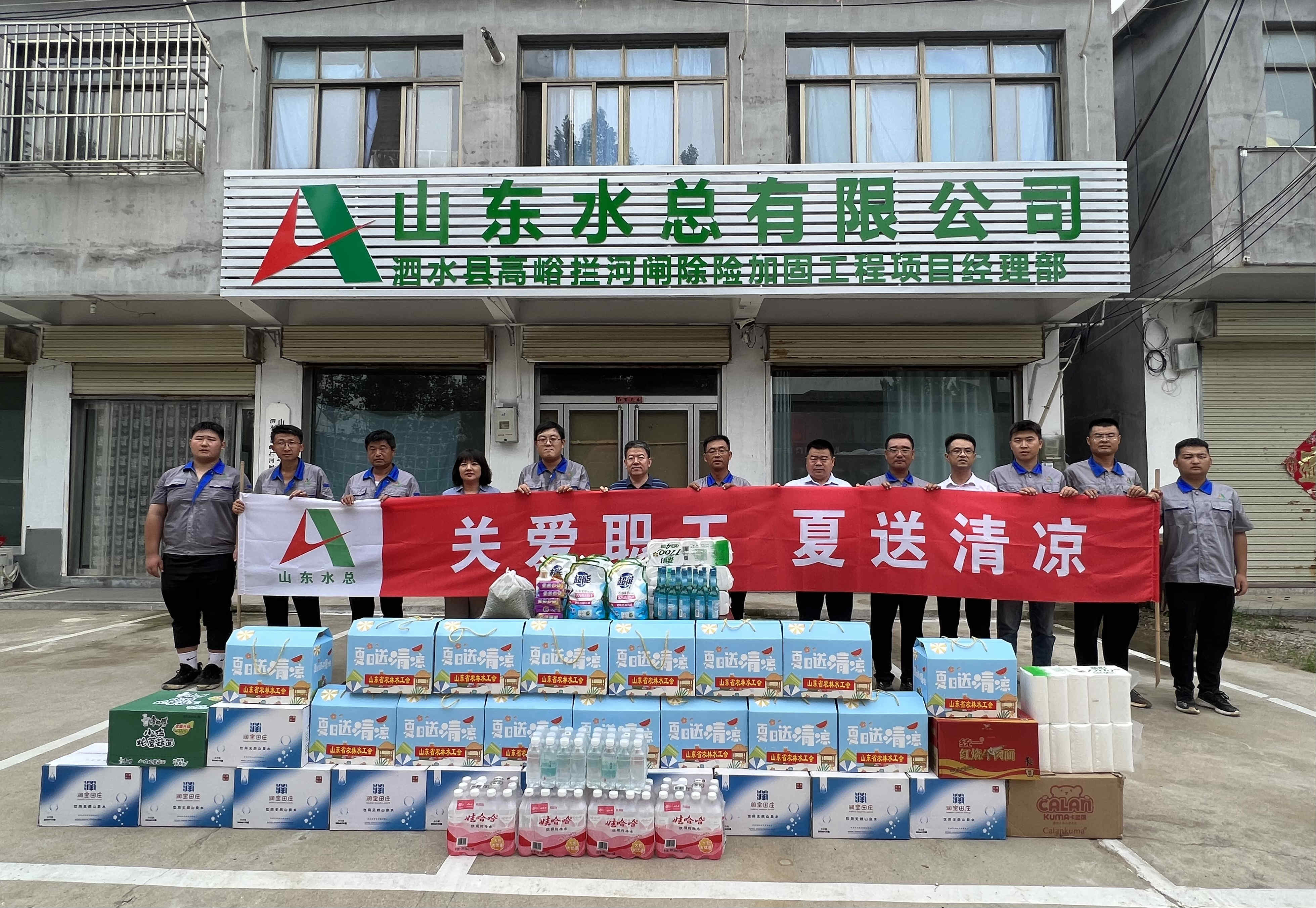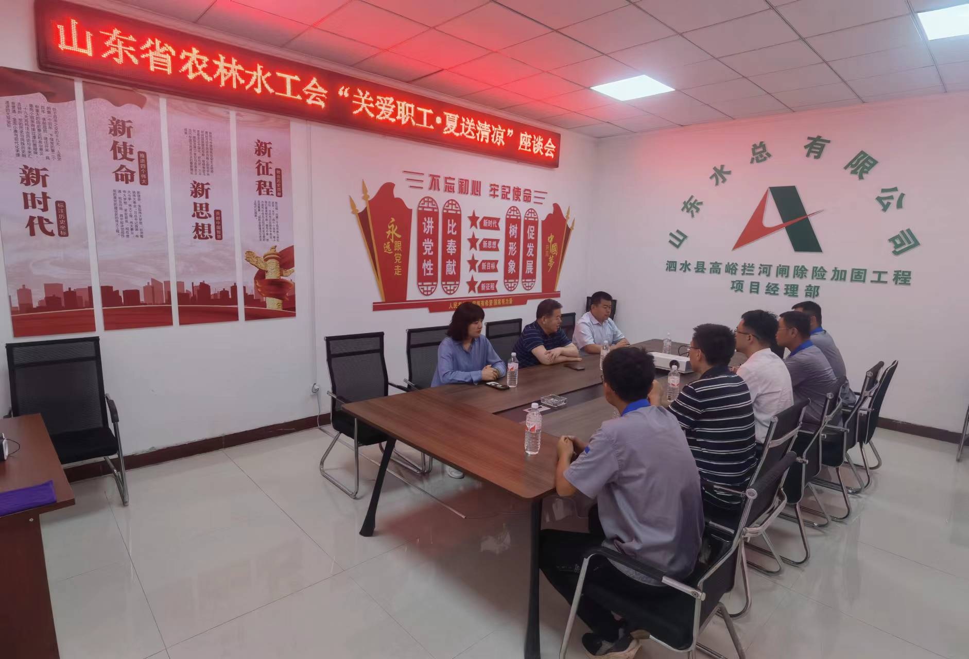 7月19日,山東省農林水工會主席張志剛一行到公司泗水縣高峪攔河閘除險加固工程開展“夏送清涼”慰問活動。公司黨委副書記、工會主席周少林,黨委組織部部長孫凌,第七分公司總經理韓棟,副總經理常征陪同參加慰問。