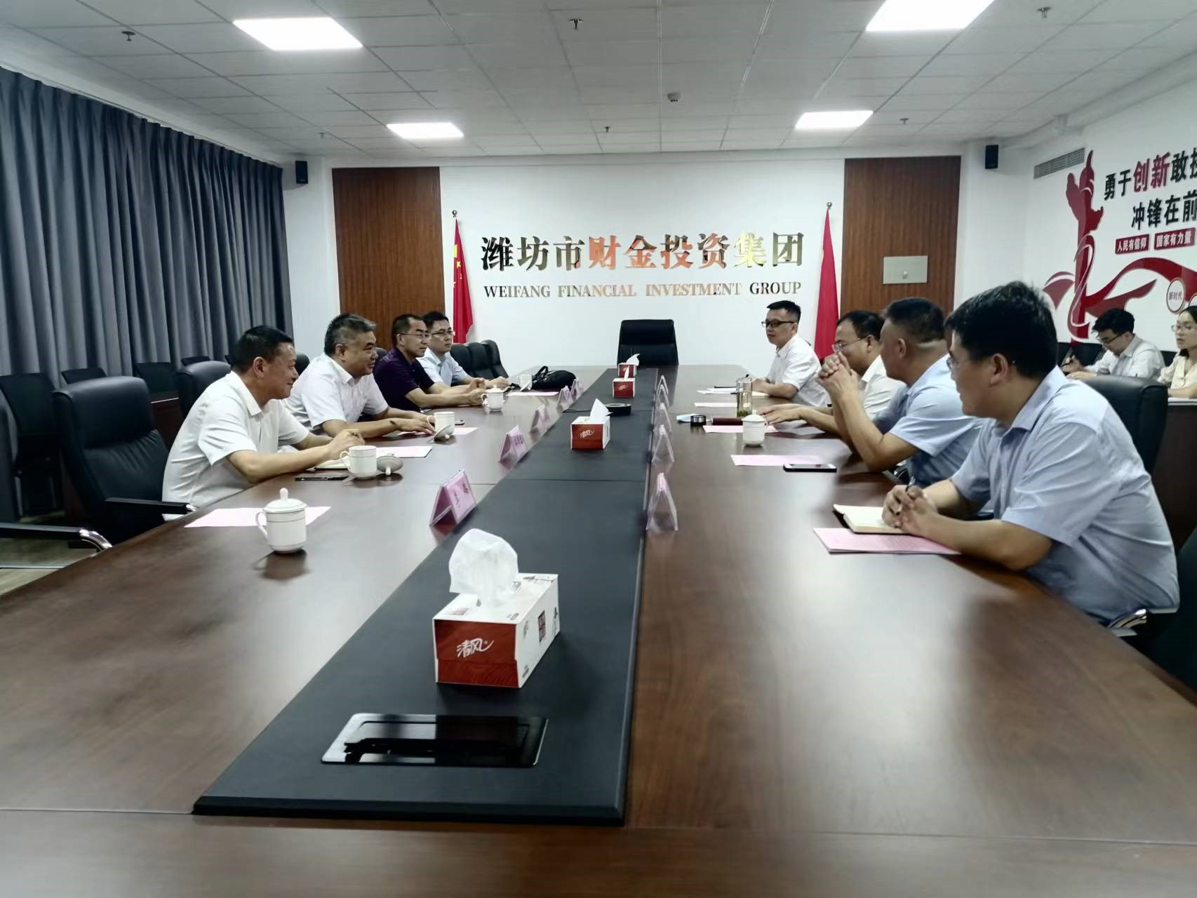 公司黨委書記、董事長劉深遠(yuǎn)一行到濰坊市財(cái)金投資集團(tuán)開展商務(wù)洽談