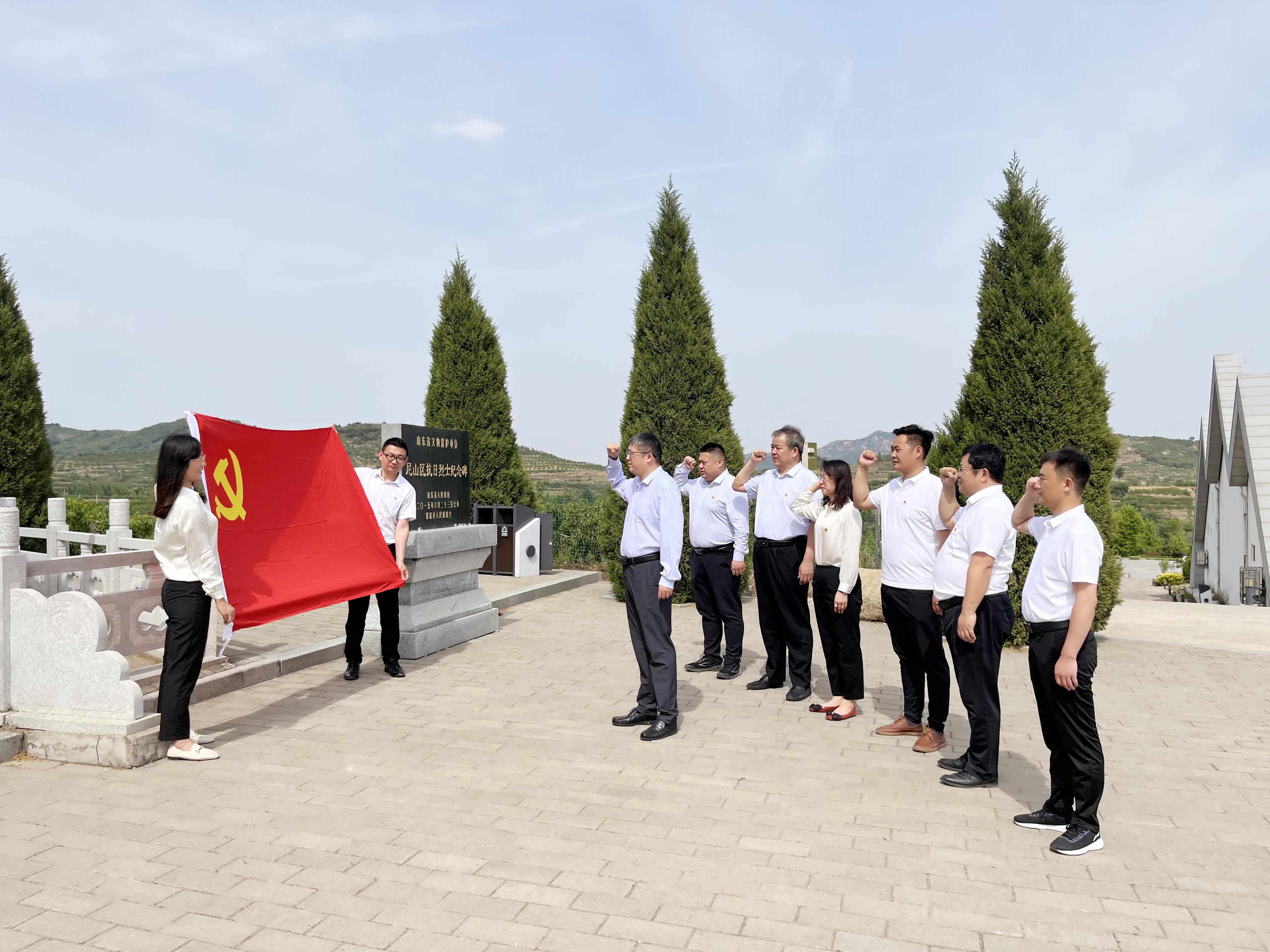 活動(dòng)開(kāi)始,黨員們懷著無(wú)比崇敬的心情參觀了尼山區(qū)抗日戰(zhàn)爭(zhēng)紀(jì)念館,認(rèn)真聆聽(tīng)講解員講述尼山區(qū)抗日根據(jù)地的開(kāi)辟過(guò)程以及尼山區(qū)軍民與日寇斗爭(zhēng)的壯烈場(chǎng)面和英雄事跡。隨后,大家來(lái)到了尼山區(qū)的抗日光復(fù)區(qū),瞻仰羅榮恒等四人的雕像。最后,大家一起來(lái)到山東省最早的抗日紀(jì)念碑前,全體黨員面向黨旗,重溫入黨誓詞。
