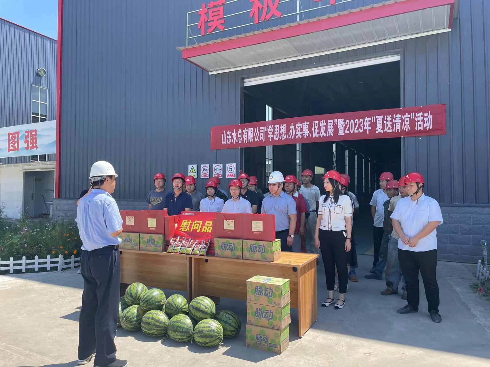 為推進(jìn)學(xué)習(xí)貫徹習(xí)近平新時(shí)代中國特色社會(huì)主義思想主題教育走深走實(shí),持續(xù)為職工群眾辦實(shí)事,傳遞公司黨委、工會(huì)對(duì)一線職工的關(guān)心關(guān)愛,7月18日,山東水總黨委委員、紀(jì)委書記朱瑞偉一行到水工機(jī)械公司開展“學(xué)思想、辦實(shí)事、促發(fā)展”暨2023年“夏送清涼”慰問活動(dòng)。