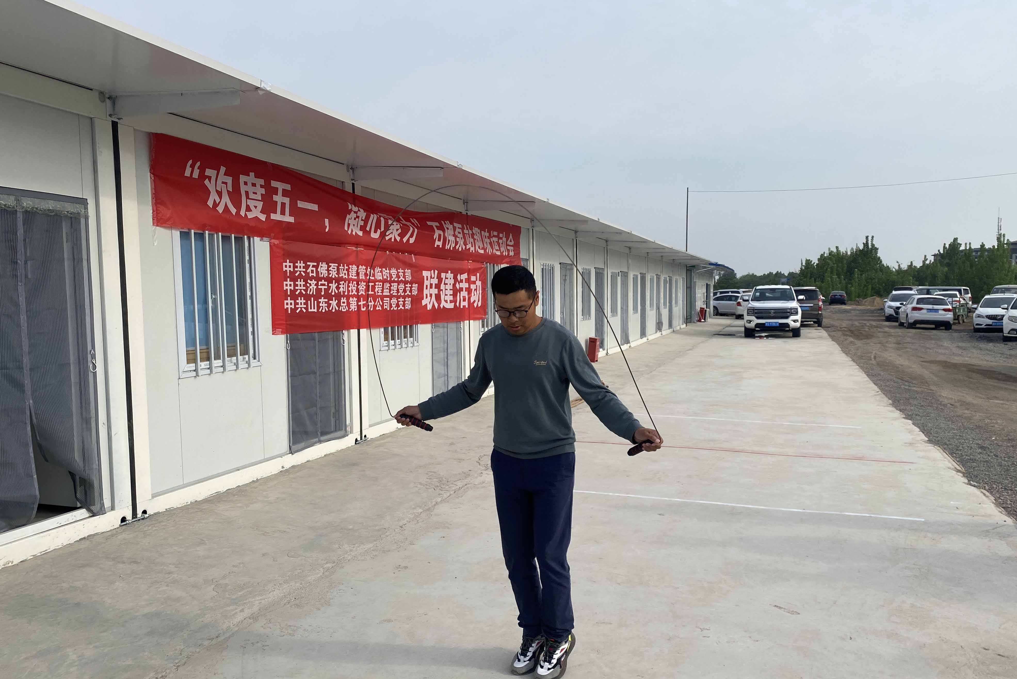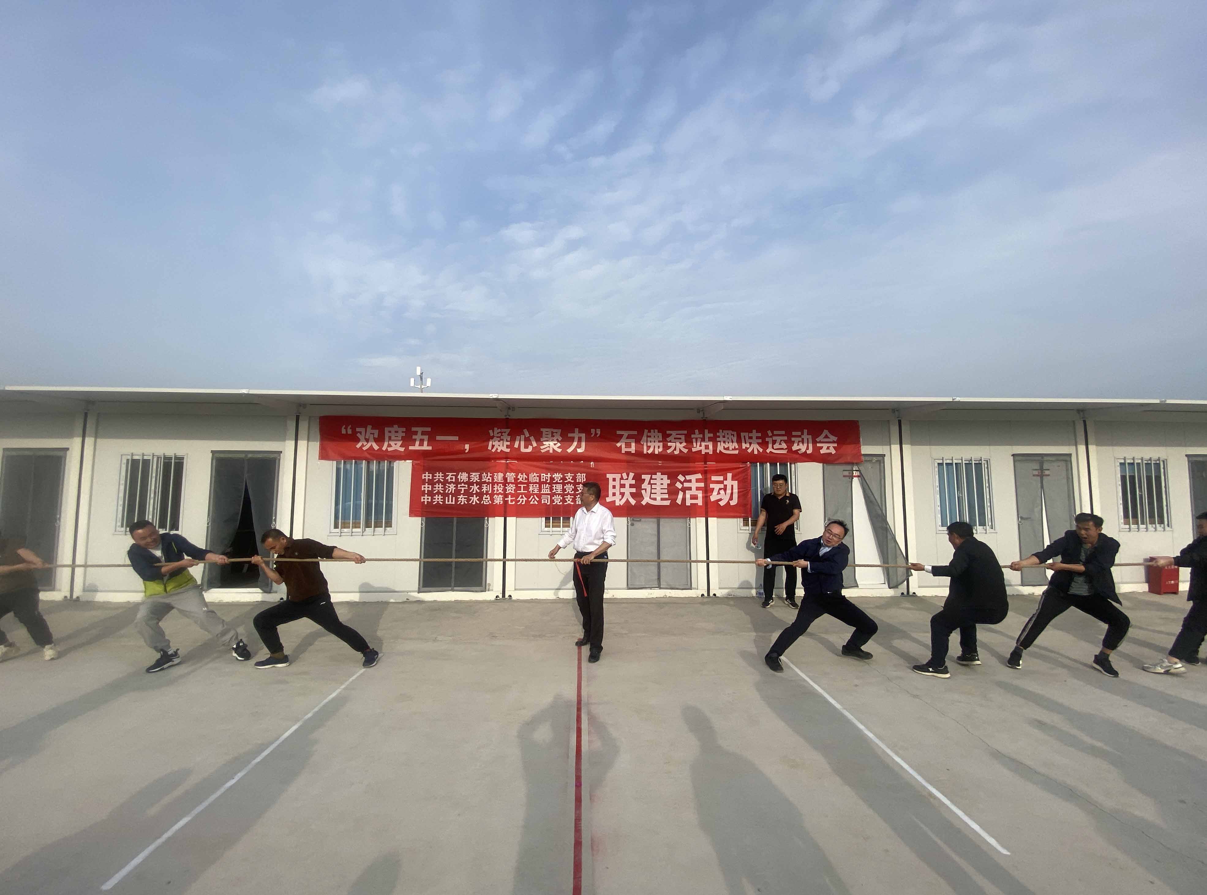 為慶?!拔逡弧眲趧庸?jié),豐富職工業(yè)余生活,4月30日,在第七分公司承建的濟寧石佛泵站項目現(xiàn)場,項目部聯(lián)合業(yè)主、設計、監(jiān)理、檢測單位舉辦了一場“歡度五一,凝心聚力”趣味運動會。