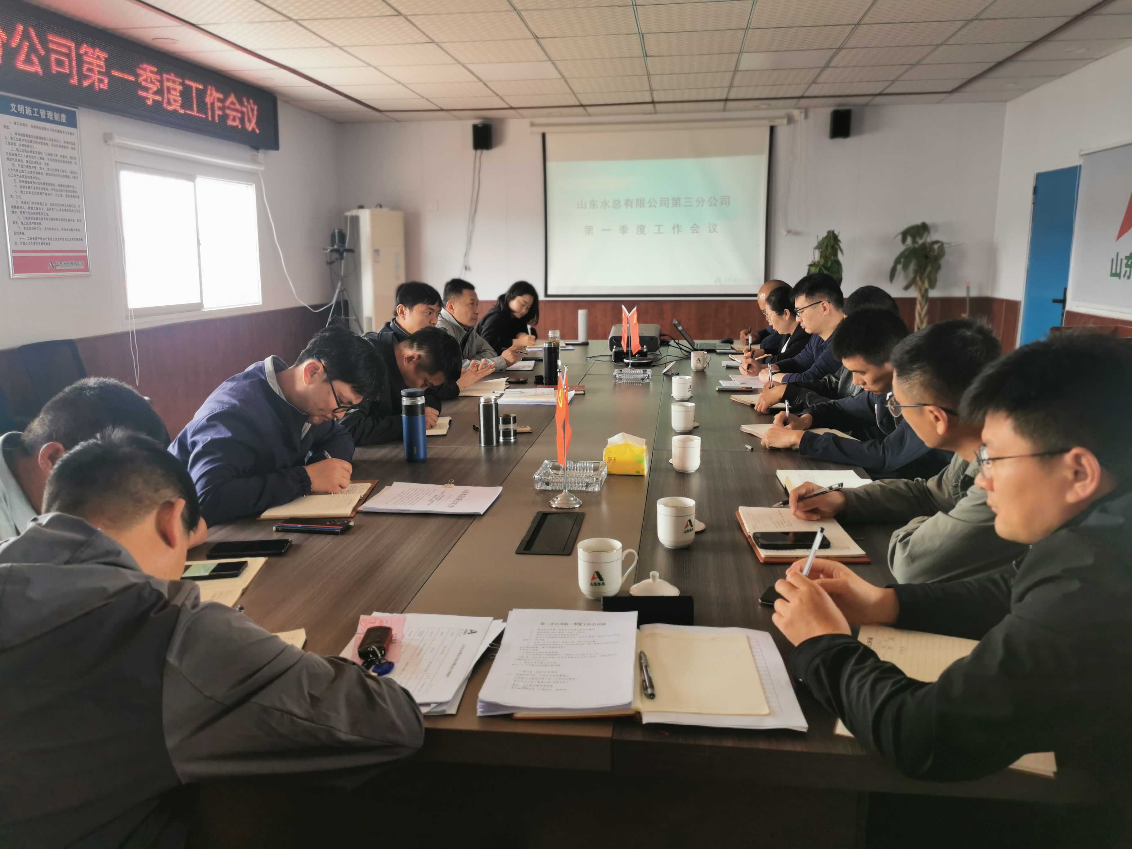 4月30日,第三分公司在沂南縣岸堤水源項(xiàng)目召開2024年第一季度工作會(huì)議,會(huì)議由第三分公司黨支部書記、總經(jīng)理徐浩主持,副總經(jīng)理、主任專家、督導(dǎo)專員、項(xiàng)目負(fù)責(zé)人及部分員工參加。