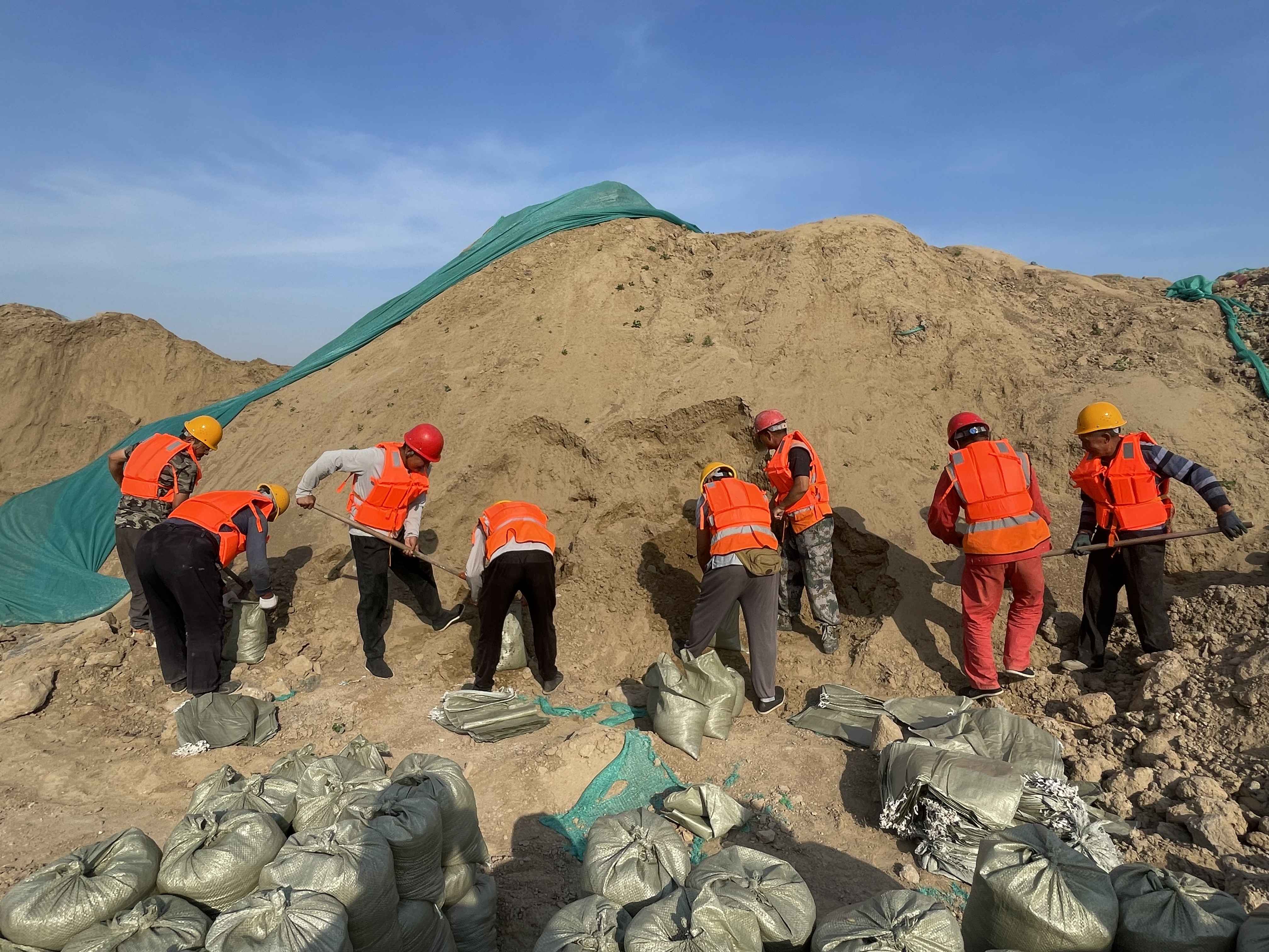 演練模擬了受連續(xù)強(qiáng)降雨強(qiáng)臺風(fēng)影響,施工區(qū)域堤防出現(xiàn)滲水、管涌、坍陷等險(xiǎn)情場景,分為滲水搶險(xiǎn)、管涌搶護(hù)、搶筑子堤共3個(gè)科目,設(shè)置了現(xiàn)場警戒組、應(yīng)急搶險(xiǎn)組、醫(yī)療救護(hù)組、后勤保障組、黨員先鋒隊(duì)等5個(gè)行動(dòng)小組,共50余人參加。演練開始后,項(xiàng)目部立即啟動(dòng)應(yīng)急響應(yīng),統(tǒng)一指揮調(diào)度搶險(xiǎn)救援工作,各小組成員按指令立即行動(dòng)。整個(gè)演練過程有條不紊,現(xiàn)場人員反應(yīng)迅速,措施妥當(dāng)、處置有效,現(xiàn)場指揮和演練人員配合默契,圓滿地完成了演練任務(wù),達(dá)到了預(yù)期目標(biāo)和成效。