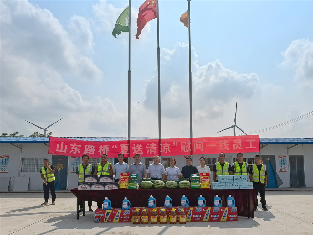 路橋股份黨委委員、工會主席張子鑫一行到基礎(chǔ)有限公司慶云縣大淀攔河閘項目部開展2024年“夏送清涼”慰問活動