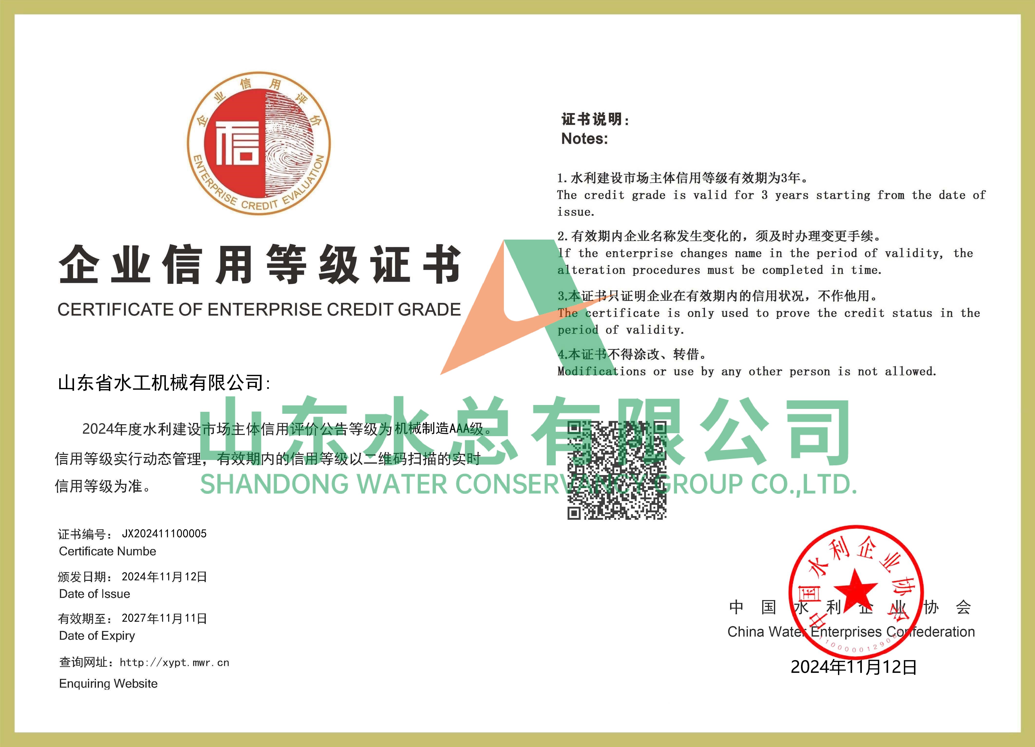 水工機(jī)械公司獲全國(guó)水利建設(shè)市場(chǎng)AAA主體信用評(píng)價(jià)
