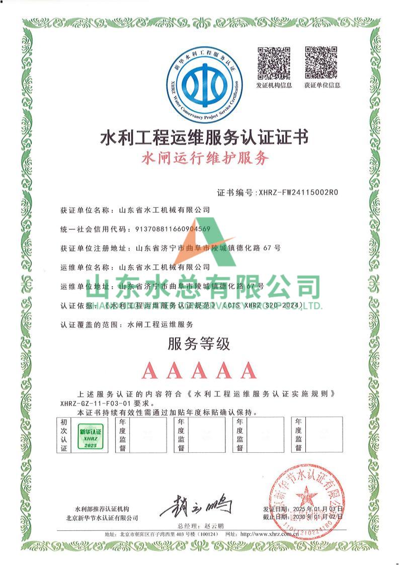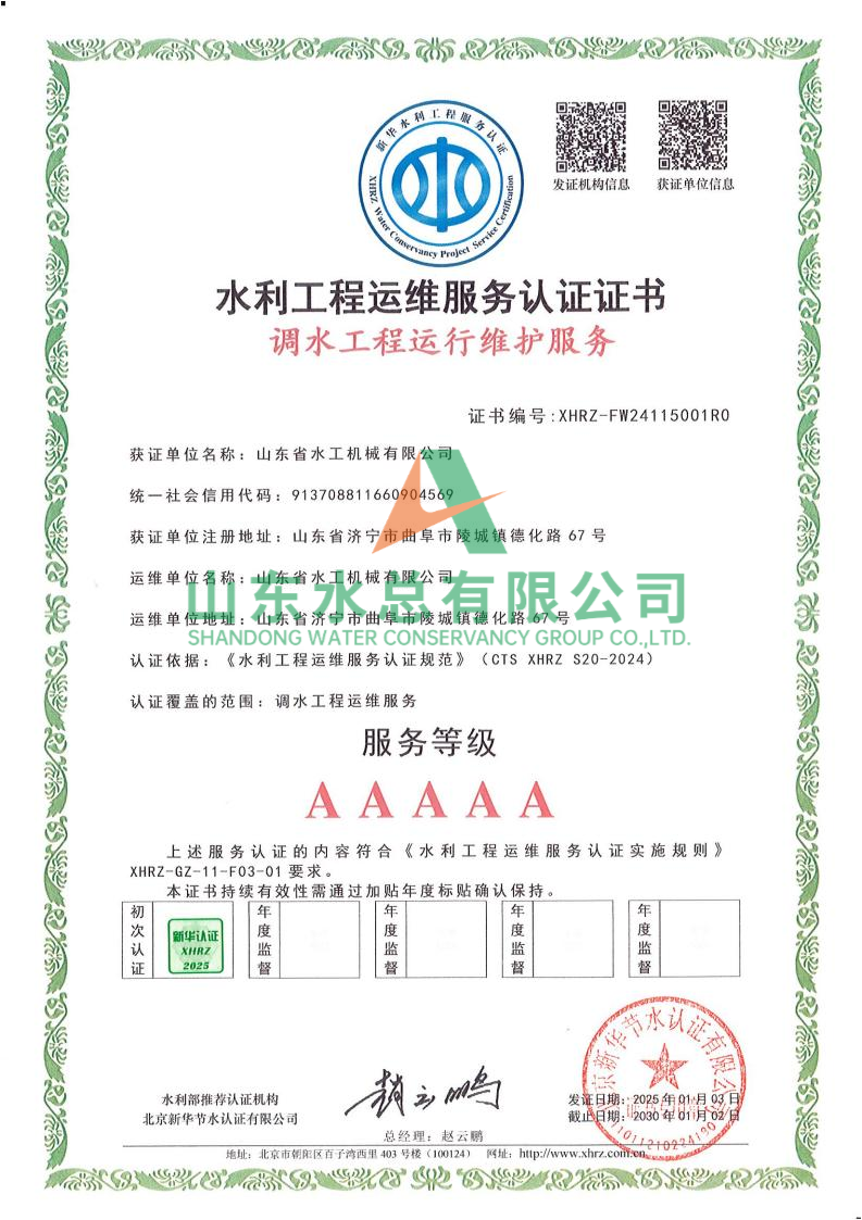 一直以來(lái),水工機(jī)械公司高度重視水利工程運(yùn)維服務(wù)的質(zhì)量與專業(yè)性,在人員配備、技術(shù)應(yīng)用、管理體系等多方面精心打磨。在認(rèn)證過(guò)程中,歷經(jīng)嚴(yán)格審核,公司憑借扎實(shí)的運(yùn)維實(shí)力、規(guī)范的服務(wù)流程以及對(duì)水利工程運(yùn)維高規(guī)格的執(zhí)行標(biāo)準(zhǔn),贏得了認(rèn)可。