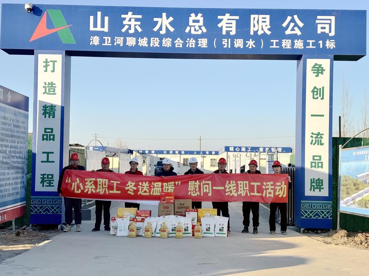 公司黨委副書記、職工董事、工會(huì)主席王坤林一行蒞臨第二分公司漳衛(wèi)河聊城段綜合治理(引調(diào)水)工程施工1標(biāo)項(xiàng)目部開展“心系職工,冬送溫暖”慰問活動(dòng)