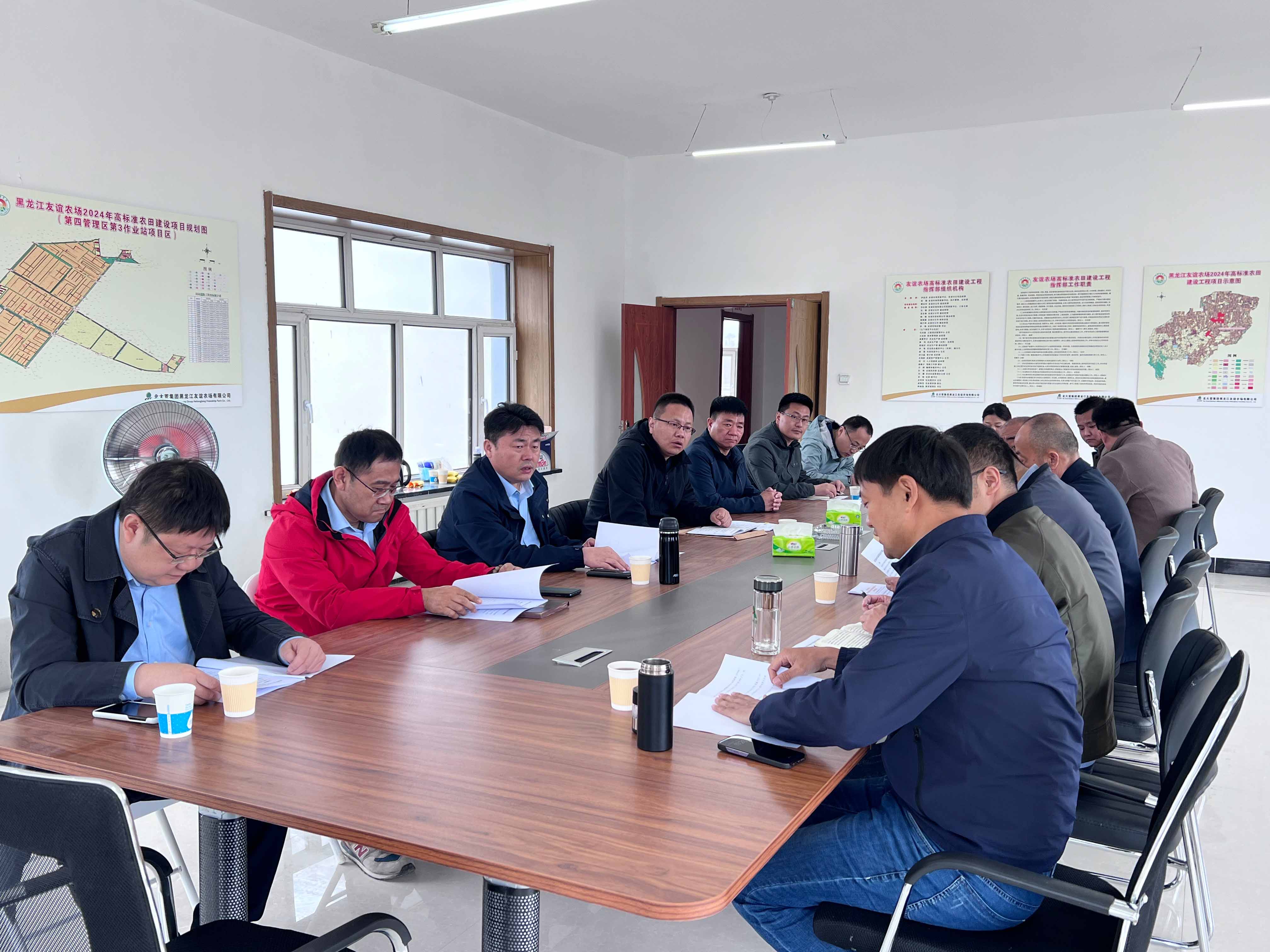 裴文晶一行首先來(lái)到黑龍江省糧食產(chǎn)能提升項(xiàng)目了解項(xiàng)目進(jìn)展,并同項(xiàng)目部一線人員進(jìn)行交流。隨后,調(diào)研組來(lái)到黑龍江友誼農(nóng)場(chǎng)2024年高標(biāo)準(zhǔn)農(nóng)田建設(shè)項(xiàng)目,同北大荒集團(tuán)黑龍江友誼農(nóng)場(chǎng)有限公司副總經(jīng)理樊慶華進(jìn)行會(huì)談。雙方對(duì)當(dāng)前項(xiàng)目的總體進(jìn)度、面臨的機(jī)遇和挑戰(zhàn)進(jìn)行了分析和研討,并對(duì)下一步如何加強(qiáng)合作進(jìn)行深入交流,展望兩家省級(jí)國(guó)有企業(yè)合作的未來(lái),努力發(fā)揮山東水總基礎(chǔ)建設(shè)和北大荒集團(tuán)農(nóng)業(yè)生產(chǎn)運(yùn)營(yíng)的優(yōu)勢(shì),打造出“1+1>2”的效果。