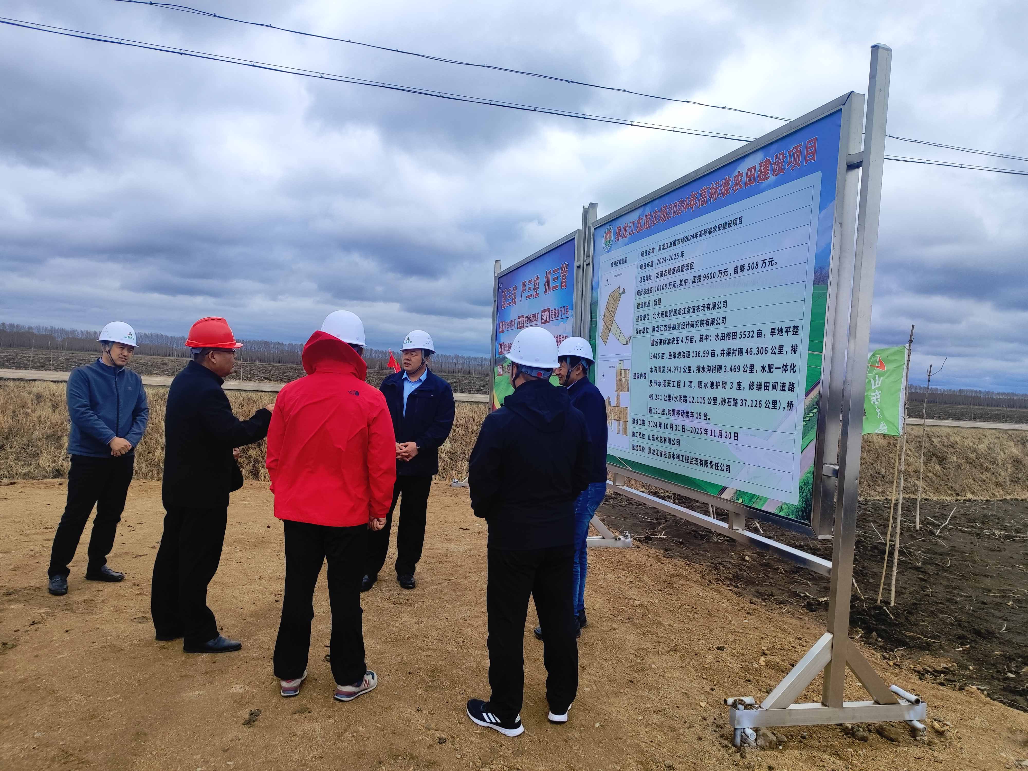 調(diào)研組還實(shí)地查看了項(xiàng)目施工現(xiàn)場(chǎng)和安全內(nèi)業(yè)資料,聽取項(xiàng)目匯報(bào),并就下一步工作提出指導(dǎo)意見和要求。裴文晶指出,友誼農(nóng)場(chǎng)2024年高標(biāo)準(zhǔn)農(nóng)田建設(shè)項(xiàng)目是近年來(lái)山東水總在黑龍江省中標(biāo)的唯一大中型的高標(biāo)準(zhǔn)農(nóng)田建設(shè)項(xiàng)目,項(xiàng)目部應(yīng)全力保證在建項(xiàng)目安全和質(zhì)量,進(jìn)一步優(yōu)化施工方案和技術(shù),推進(jìn)度、提質(zhì)效,打造水總品牌。