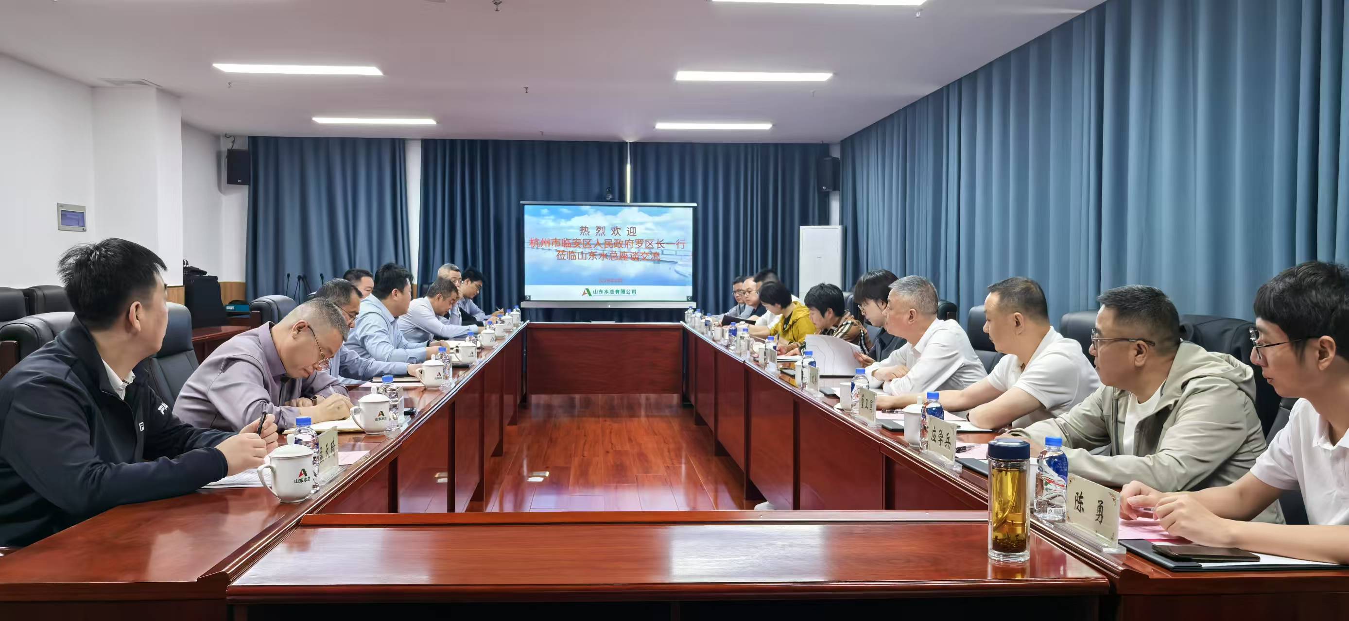 臨安區(qū)水利水電局黨委書記、局長湯文卓,臨安區(qū)農(nóng)業(yè)農(nóng)村局黨委書記、局長陶國英,臨安區(qū)人民政府辦公室副主任朱華,公司領導班子成員及相關部室負責人參加座談。