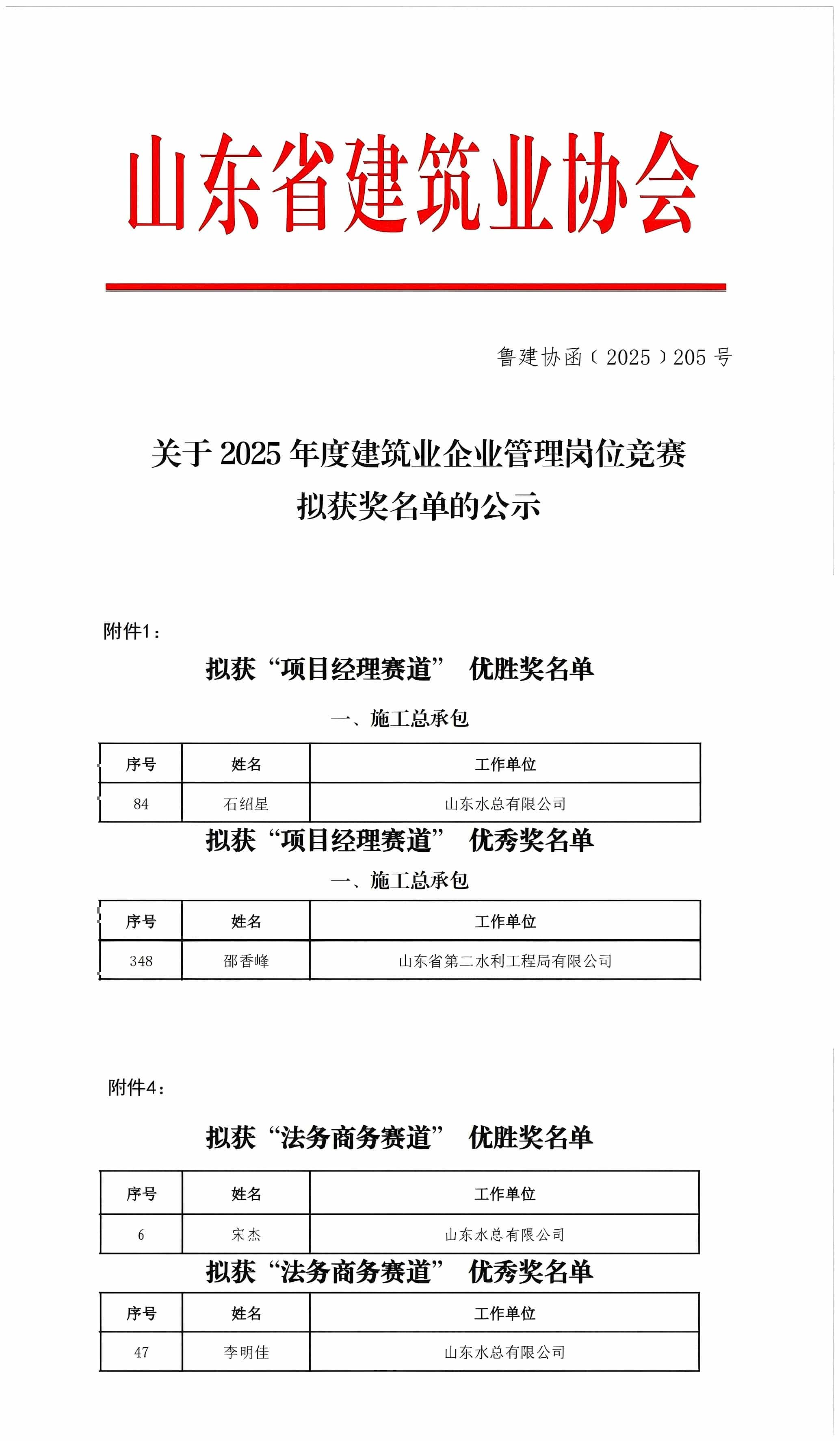 近日,由山東省建筑業(yè)協(xié)會(huì)發(fā)起的2025年度建筑業(yè)企業(yè)管理崗位競(jìng)賽圓滿落幕,公司選送的參賽人員憑借扎實(shí)的專業(yè)素養(yǎng)、精湛的管理能力脫穎而出,在“項(xiàng)目經(jīng)理賽道”中,第三分公司石紹星獲優(yōu)勝獎(jiǎng),二局有限公司邵香峰獲優(yōu)秀獎(jiǎng);在“法務(wù)商務(wù)賽道”中,企業(yè)管理部宋杰獲優(yōu)勝獎(jiǎng),第三分公司李明佳獲優(yōu)秀獎(jiǎng)。以上榮譽(yù)的獲得充分彰顯了公司建筑行業(yè)管理崗位人才的專業(yè)素養(yǎng)與創(chuàng)新活力。