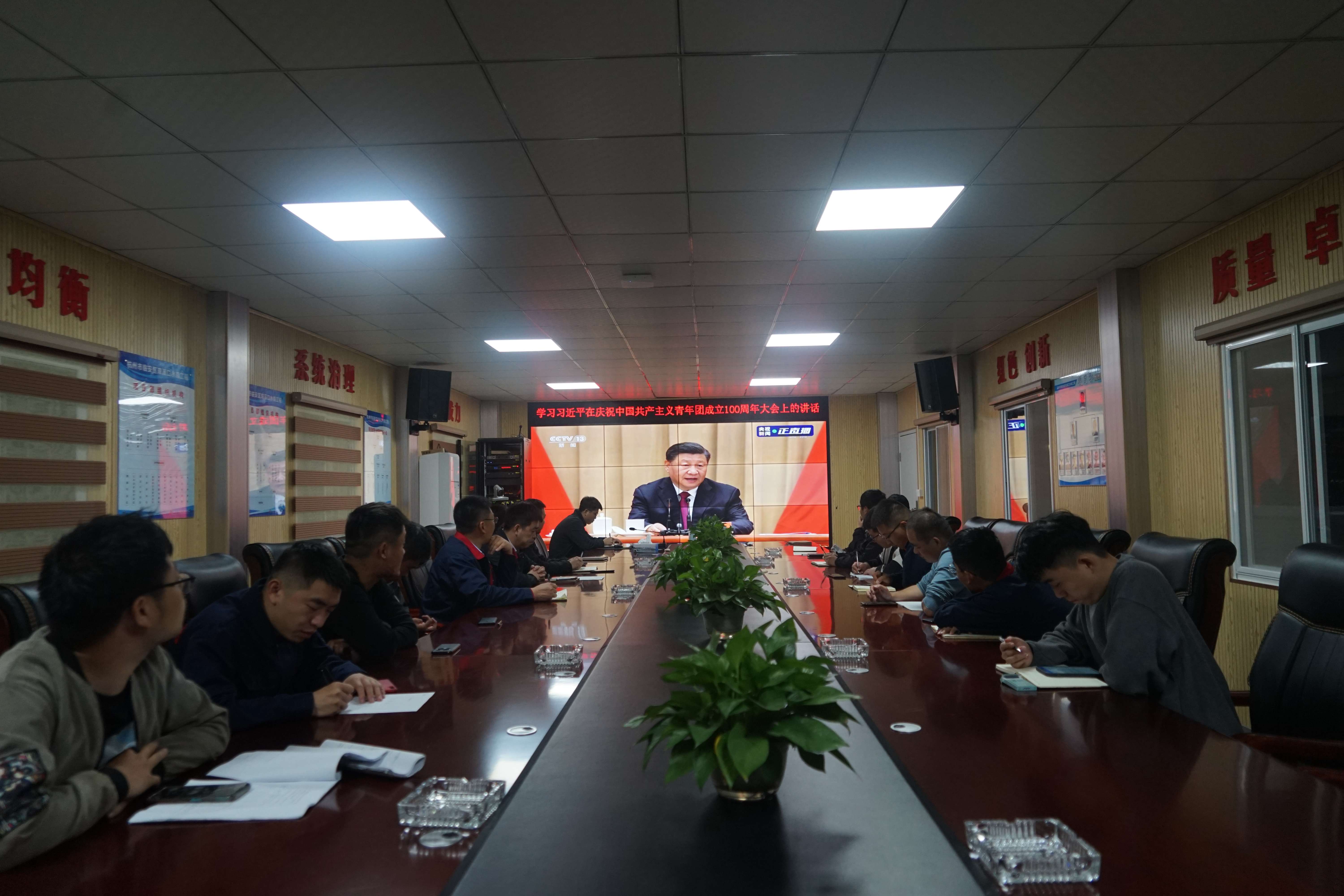 5月10日,杭州魯潤(rùn)公司與第六分公司共同組織雙溪口水庫工程團(tuán)員青年,觀看中國(guó)共產(chǎn)主義青年團(tuán)成立100周年慶祝大會(huì)實(shí)況。慶祝大會(huì)上,習(xí)近平總書記發(fā)表了重要講話。