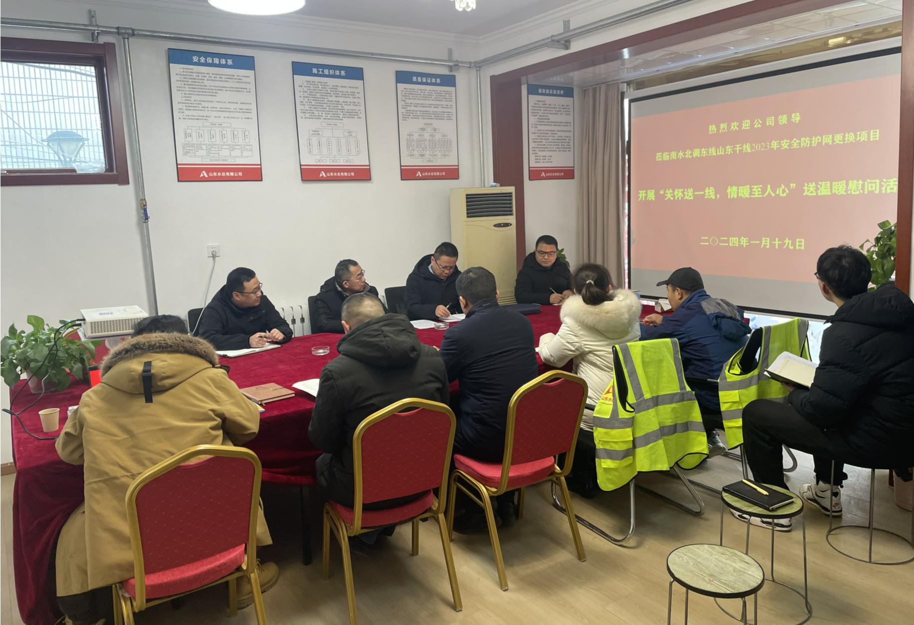 1月19日,公司黨委委員、副總經(jīng)理袁英杰,工程管理部相關(guān)人員一行到南水北調(diào)東線山東干線2023年安全防護(hù)網(wǎng)更換項(xiàng)目,開展“關(guān)懷送一線 情暖至人心”送溫暖慰問活動(dòng)