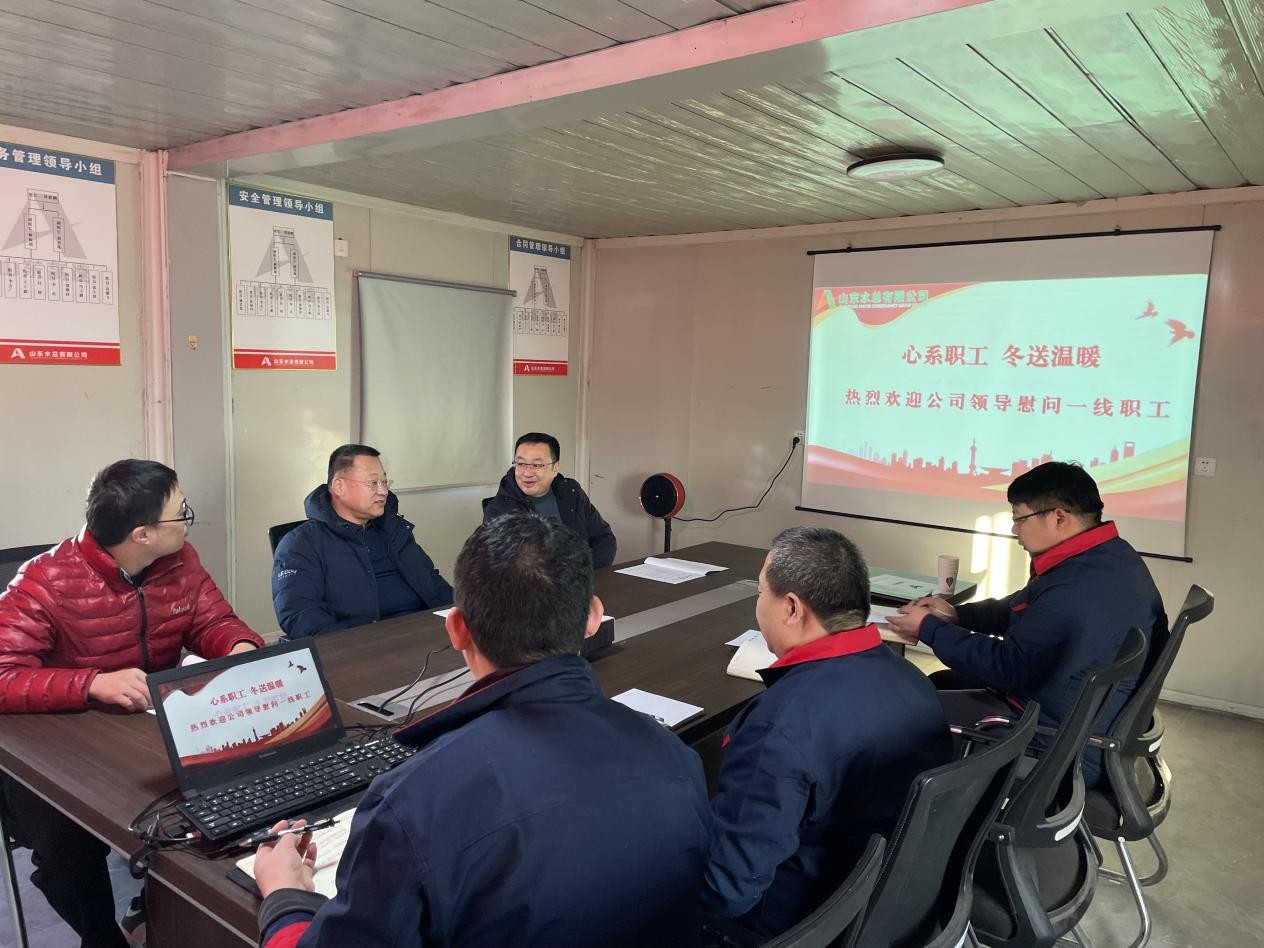 王坤林向一線(xiàn)職工表達(dá)了深切問(wèn)候并發(fā)放慰問(wèn)品,對(duì)大家不畏嚴(yán)寒、堅(jiān)守崗位的精神給予了高度評(píng)價(jià)。隨后查看了職工生活環(huán)境及項(xiàng)目施工現(xiàn)場(chǎng),聽(tīng)取了項(xiàng)目建設(shè)情況匯報(bào)。會(huì)上,王坤林鼓勵(lì)員工繼續(xù)發(fā)揚(yáng)團(tuán)結(jié)奮斗、勇于擔(dān)當(dāng)?shù)墓ぷ骶?,為?xiàng)目平穩(wěn)推進(jìn)貢獻(xiàn)自己的力量。